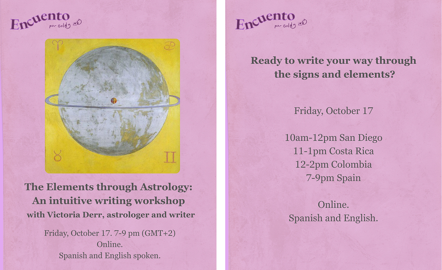 Every zodiac sign is infused with the energy of its element, influencing the way it moves through life. By exploring the elements, we learn to recognize our natural rhythms. In doing so, we cultivate a stronger connection to ourselves and our experience of world. We will then translate this knowledge into writing, using the archetypes to develop characters for literary work or to deepen our observation of our own creative voice.†oo